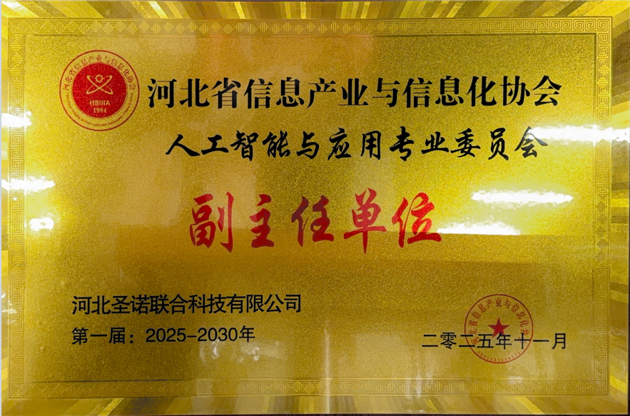 近日,圣诺联合再次蝉联河北信息产业与信息化协会第五届副会长单位,并凭借在人工智能等前沿科技领域的深厚积累与卓越贡献,获任河北省信息产业与信息化协会(人工智能与应用专业委员会)副主任单位,标志着公司在人工智能技术研发与应用落地方面获得的成绩与领先地位,获得了行业权威机构与社会各界的高度认可。