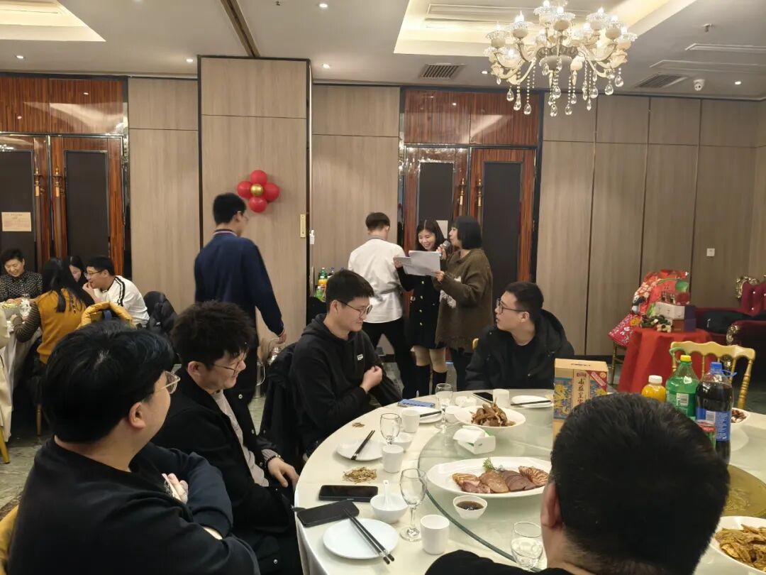 晚宴现场暖意融融、气氛热烈。大家卸下忙碌,围坐一桌,共享美味佳肴,畅谈工作与生活。